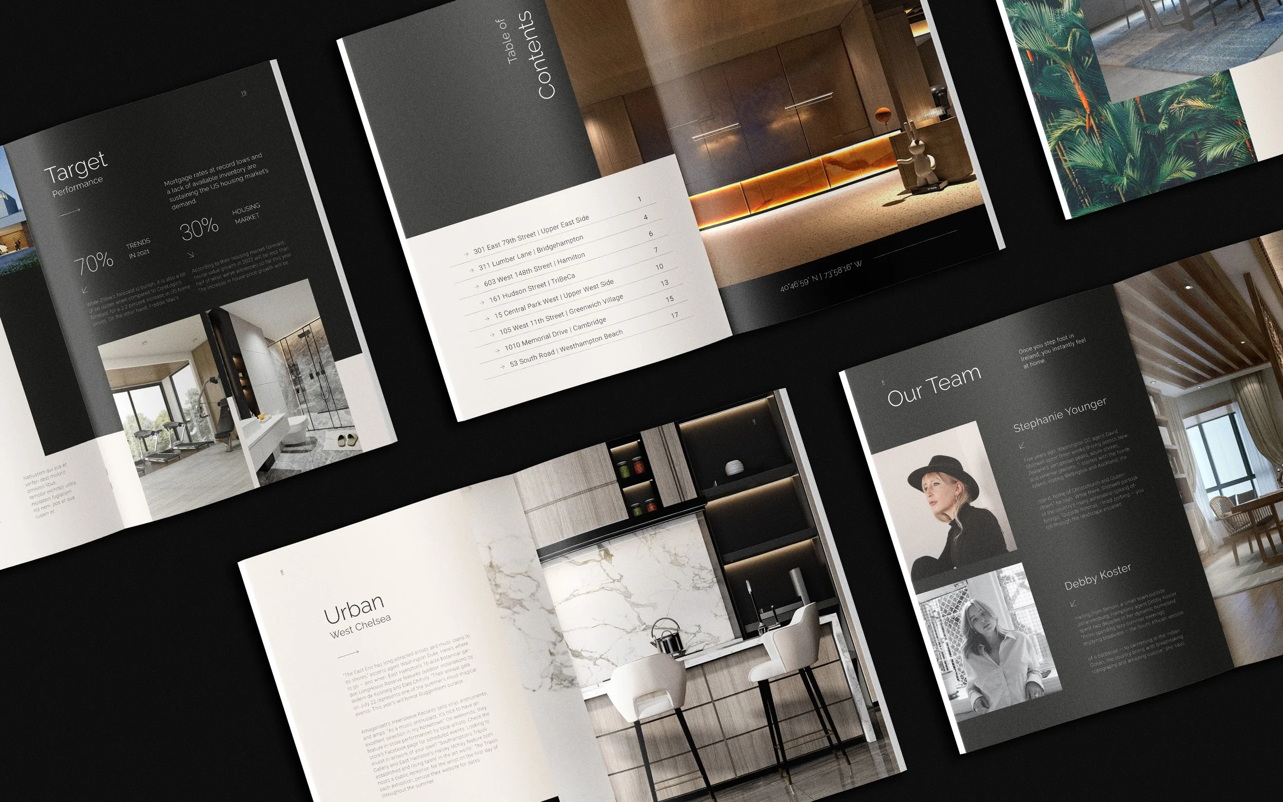 The typographic treatment of the logo suited the high-end real estate agency, while the use of black and white as the selected color palette was not only employed to put forth a sense of neutrality, but also the firm’s identity.